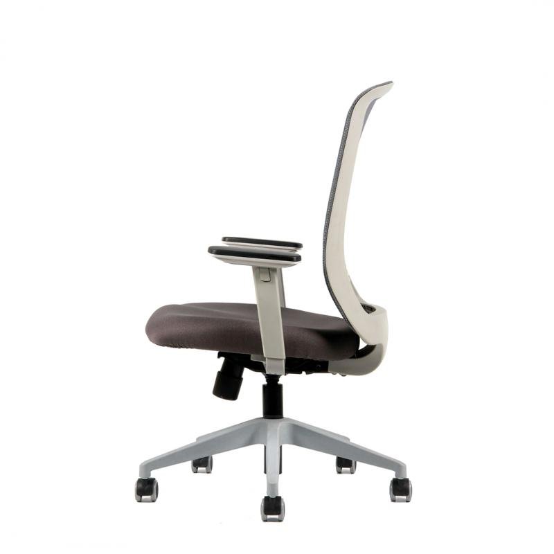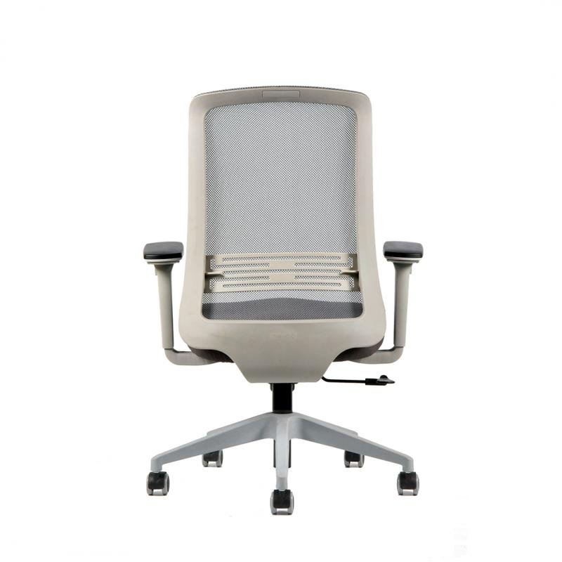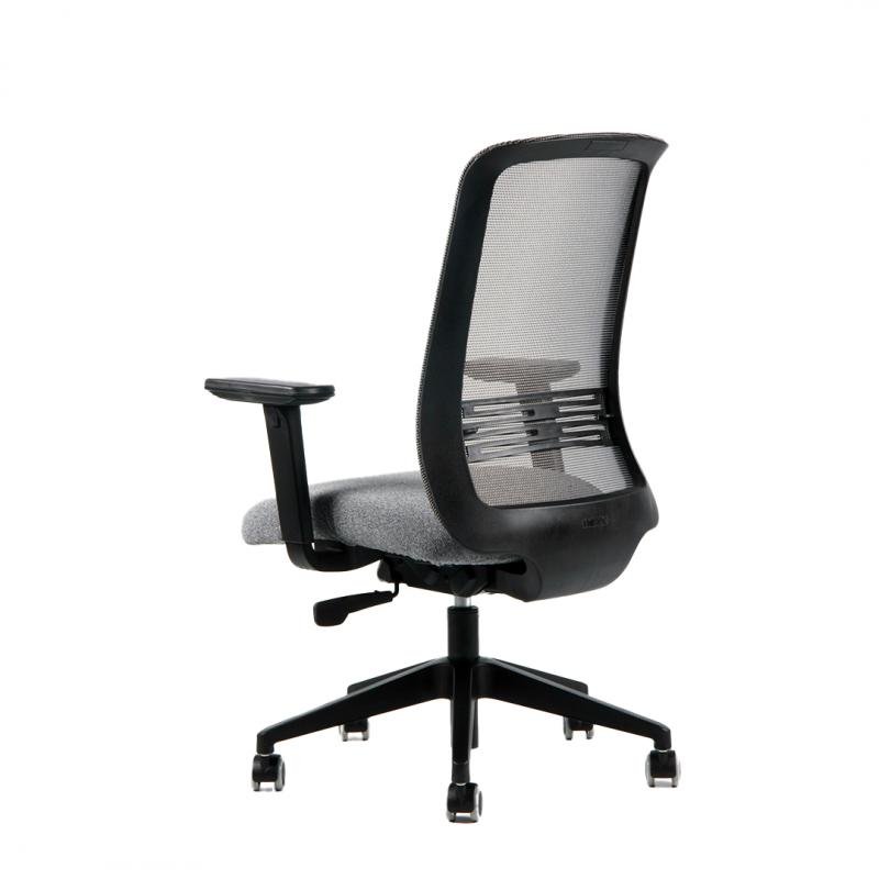 Su respaldo es de red elástica con varias opciones de colores y su asiento es tapizado en tela tipo poliéster o simil cuero, también con varios opciones de color.